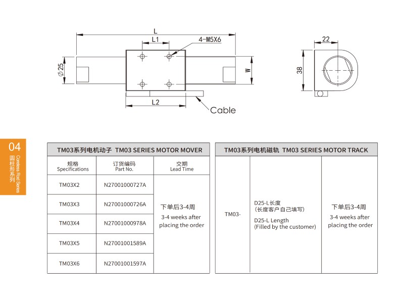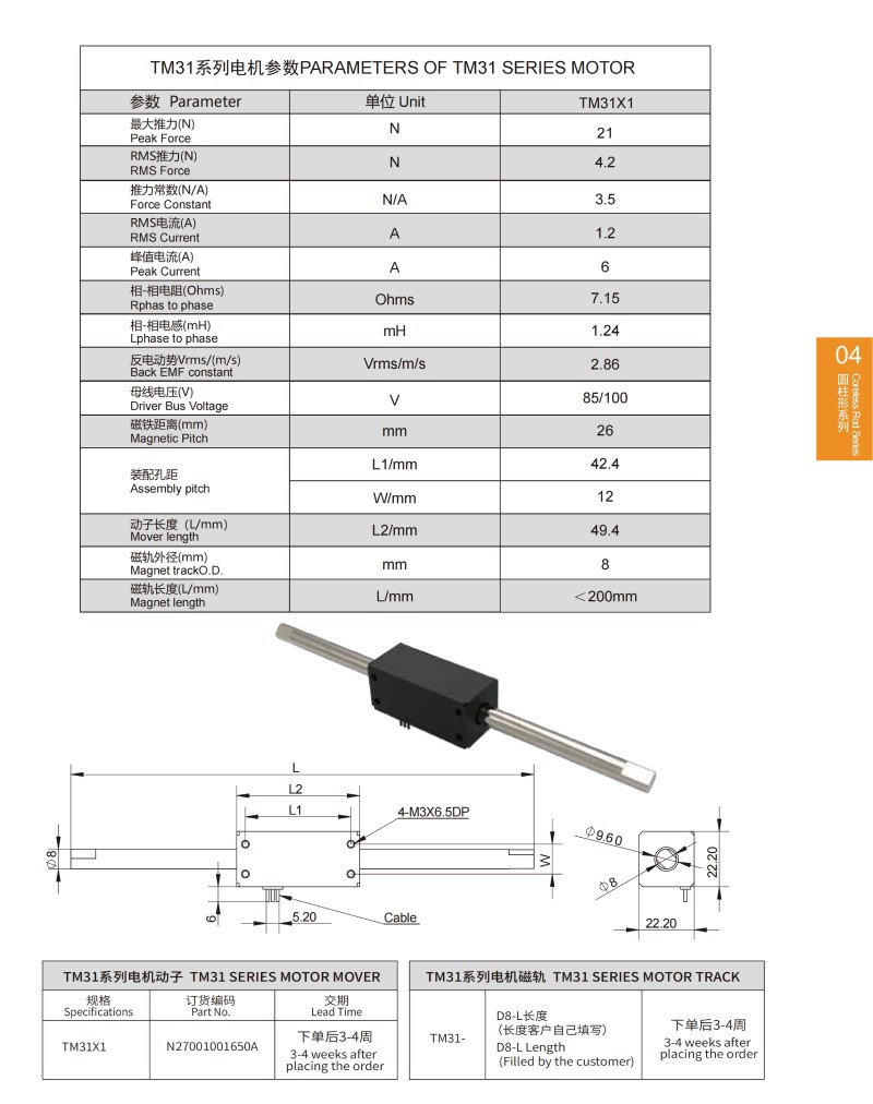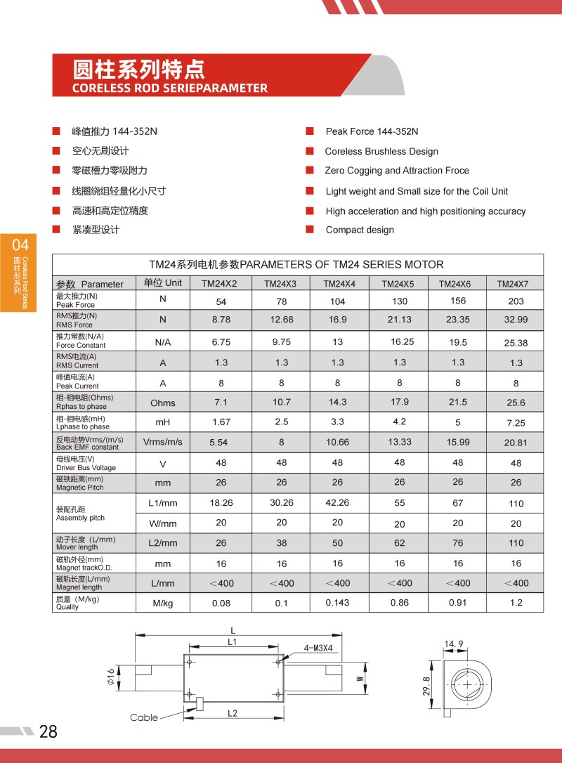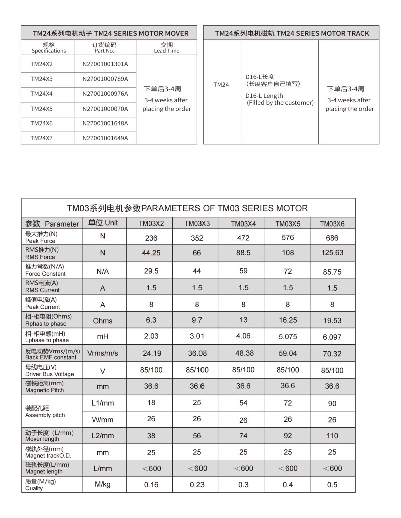 TM 24系列圓柱形直線電機參數PARAMETERS OF TM 24 SERIES MOTOR