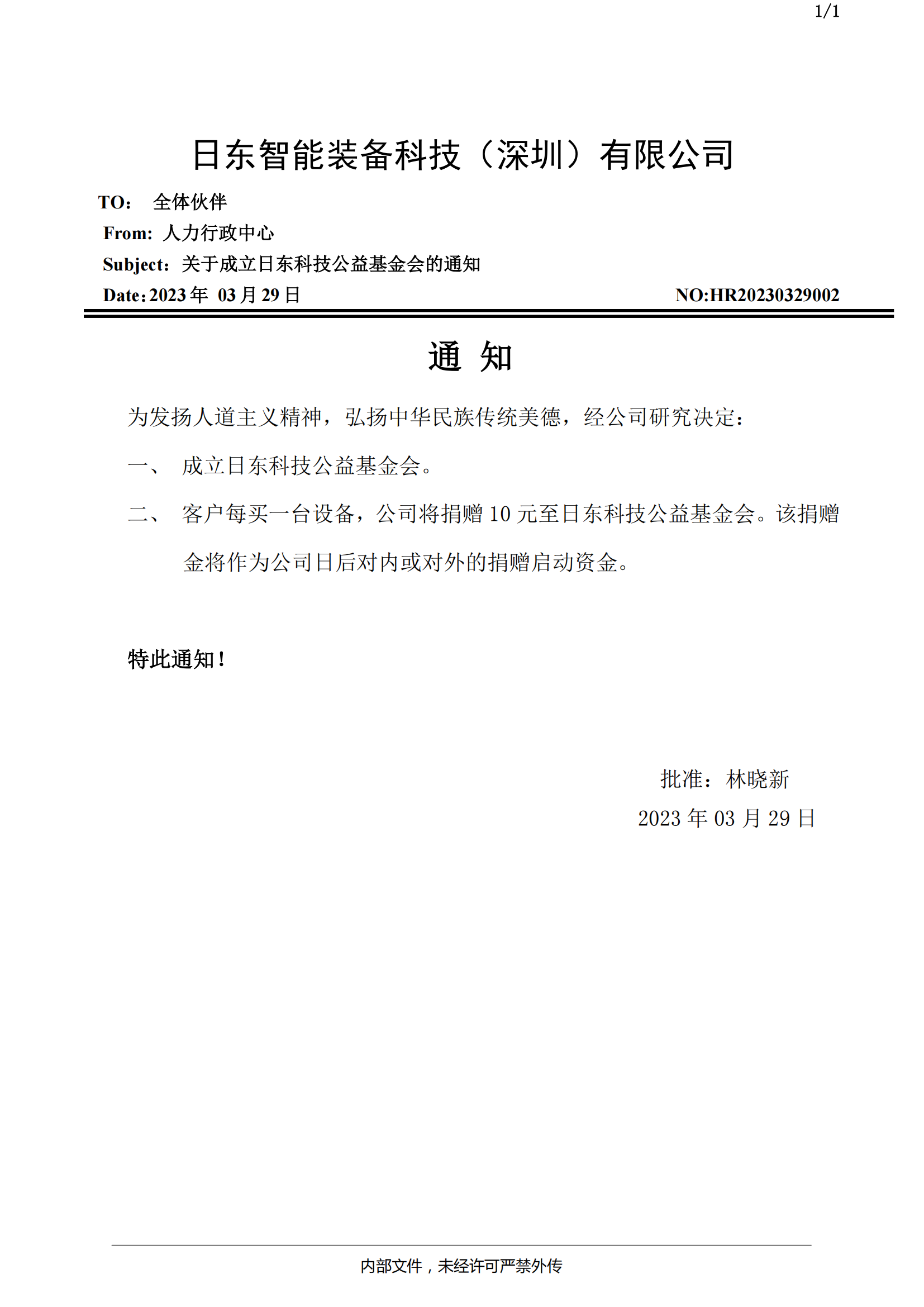 為發揚人道主義精神,弘揚中華民族傳統美德,經公司研究決定: