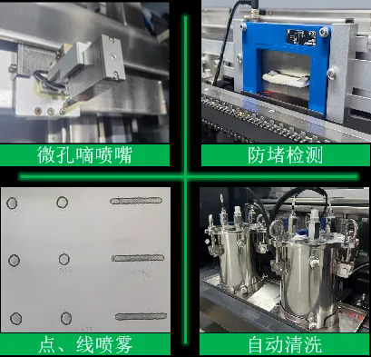 采用微孔滴噴嘴,130um直徑,噴射范圍2~8mm。伺服電機(jī)運(yùn)動控制,點(diǎn)對點(diǎn)式噴射,大量節(jié)約助焊劑使用,噴射精度±0.25mm。標(biāo)配噴嘴防堵檢測、自動清洗功能。