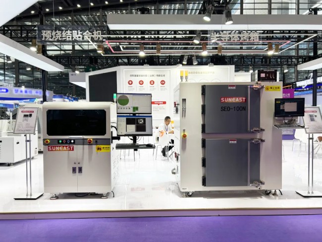 在本次展會上,日東科技展出了最新研發(fā)的半導(dǎo)體封裝設(shè)備,展示了在這一領(lǐng)域的持續(xù)創(chuàng)新與突破。自主研發(fā)的“IC貼合機(jī)”和“預(yù)燒結(jié)貼合機(jī)”可實現(xiàn)高精度芯片貼合,應(yīng)對大批量wafer上料的貼裝產(chǎn)品及功率模塊、電源模塊、新能源、智能電網(wǎng)等產(chǎn)業(yè)領(lǐng)域。此外,新推出的“半導(dǎo)體烤箱”和“快速固化烤箱”則在半導(dǎo)體封裝制程中提供了可靠的烘烤、固化與粘接解決方案。這些設(shè)備的展出不僅體現(xiàn)了日東科技強(qiáng)大的研發(fā)實力,也為客戶帶來了更多高效、穩(wěn)定的生產(chǎn)選擇。