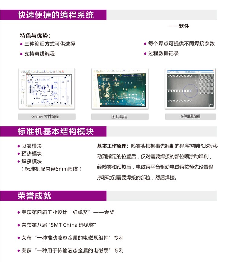 擺在企業(yè)面前的這些嚴(yán)格的要求自然反映在生產(chǎn)設(shè)備上,這也正好說明了為什么在過去幾年中,選擇性波峰焊接技術(shù)會在電子生產(chǎn)領(lǐng)域比其它工藝發(fā)展得更迅速。由于無鉛焊接技術(shù)的要求,新的生產(chǎn)工藝問題在不斷出現(xiàn)。例如,無鉛焊接工藝需要更高的焊接溫度;無鉛焊料冷凝得更快;金屬和銅在無鉛合金焊料中要比在錫鉛焊料中溶解得快。這些更嚴(yán)格的條件意味著,生產(chǎn)中需要合適的焊接設(shè)備來有效、可靠地應(yīng)對無鉛焊接所帶來的腐蝕性。選擇性波峰焊一貫堅持其特性必須符合無鉛選擇性焊接工作藝的要求,并向用戶提供了針對各種類型選擇性焊接應(yīng)用的多種產(chǎn)品選擇范圍。