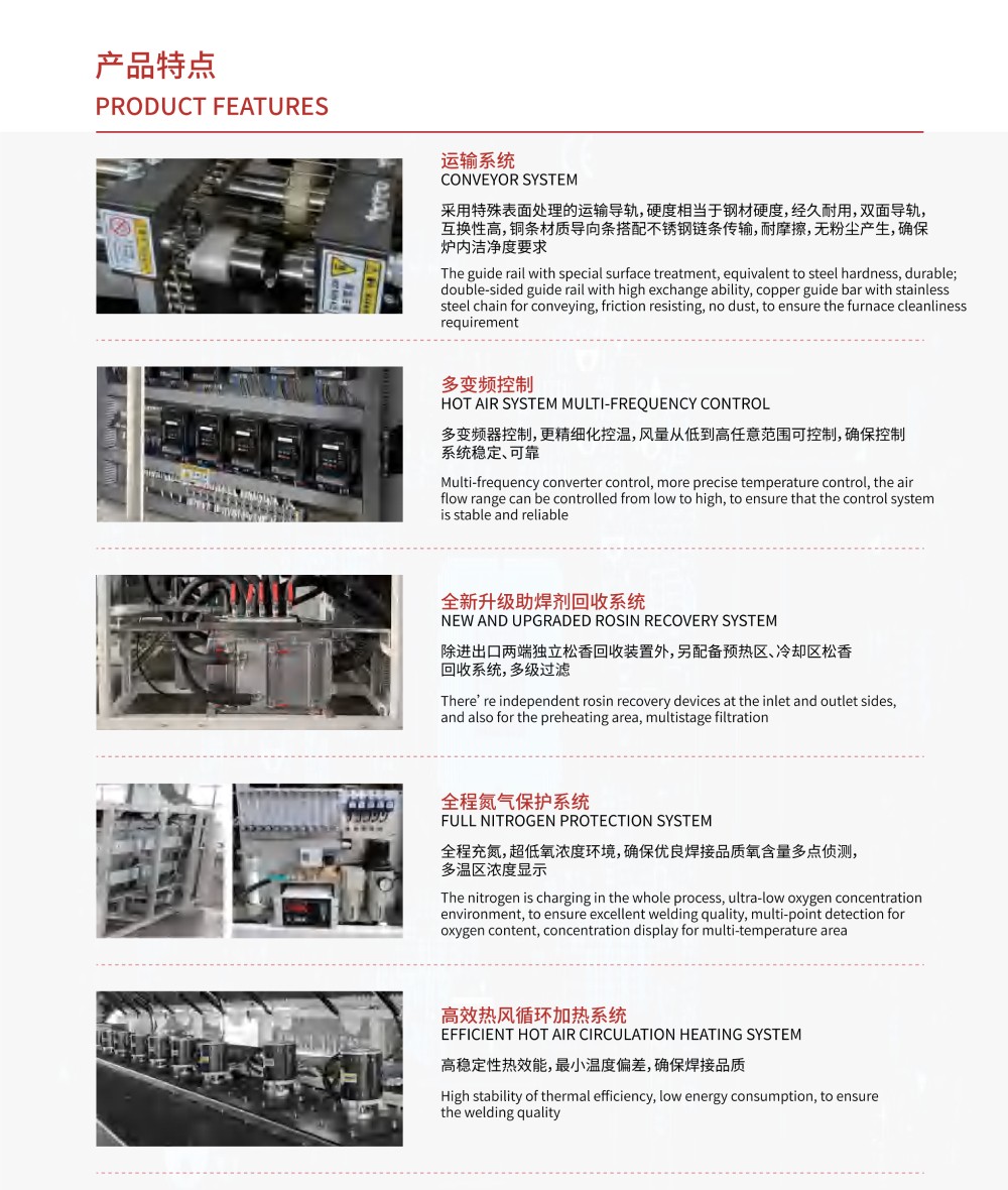 2、 多變頻器控制, 精細化控溫,實現(xiàn)更小PCB焊點溫度偏差;