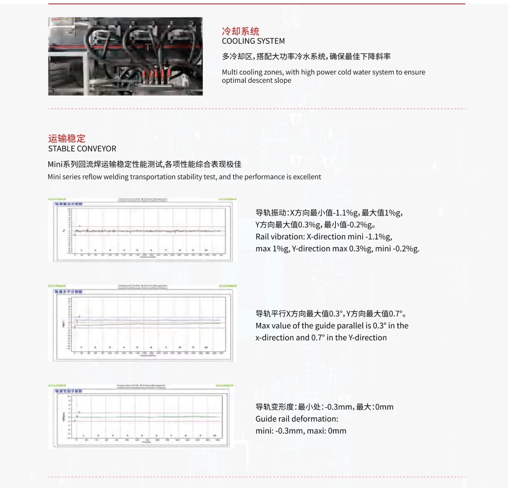 4、 全程氮氣保護,各溫區(qū)氮氣獨立控制,多點監(jiān)測,可以控制在200-500PPM內(nèi);